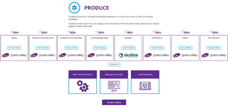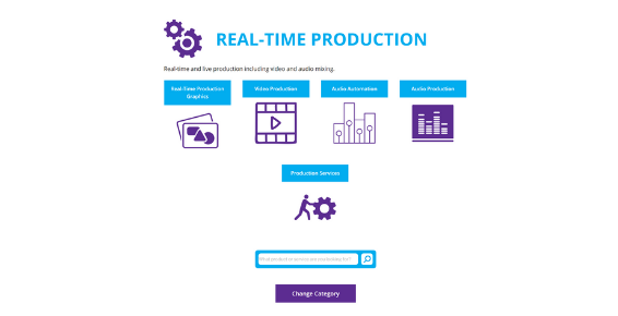 Real-time production equipment including audio and video mixers/switchers, real-time graphics, virtual sets and production automation. News and sport production and automation. Post-production tools including edit, color grade/correction, VFX and audio mix. Tools to manage the production process and resources. Production and post-production services including studios, OB trucks and creative services.