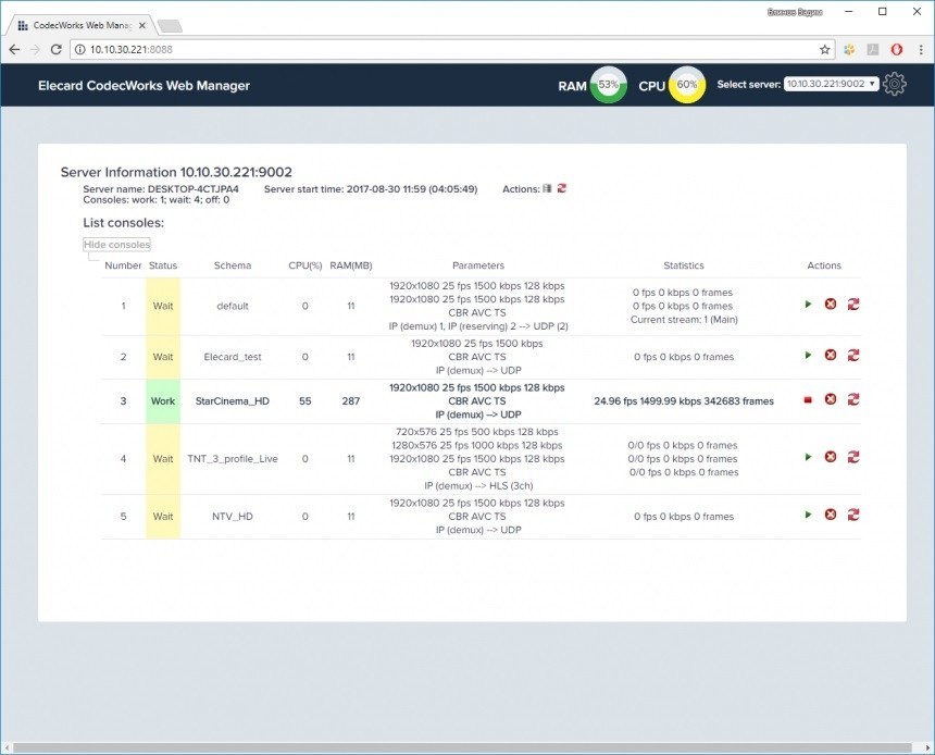 Easy to Use GUI Will Transcode and Process Multiple Streams up to 40Ch. Supports UDP, RTMP, HLS, and DASH for Live Streaming or Broadcast.