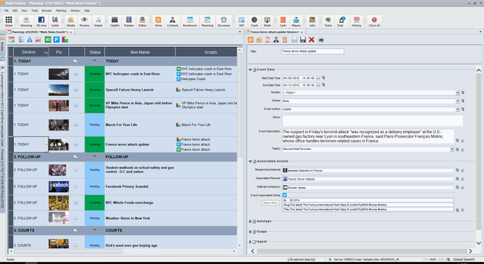 Planning & Assignment Editors create events on specific subjects for which journalists receive job assignments along with valuable information such as descriptions, associated wires, linked media or PDF, URLs and more. When inserted into a rundown, all related stories created by journalists are automatically inserted pending editor’s validation.