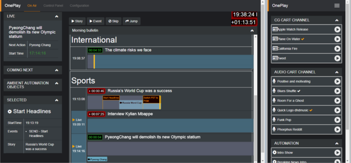 - Toggle between playout of video elements and story on-air with simple shortcuts