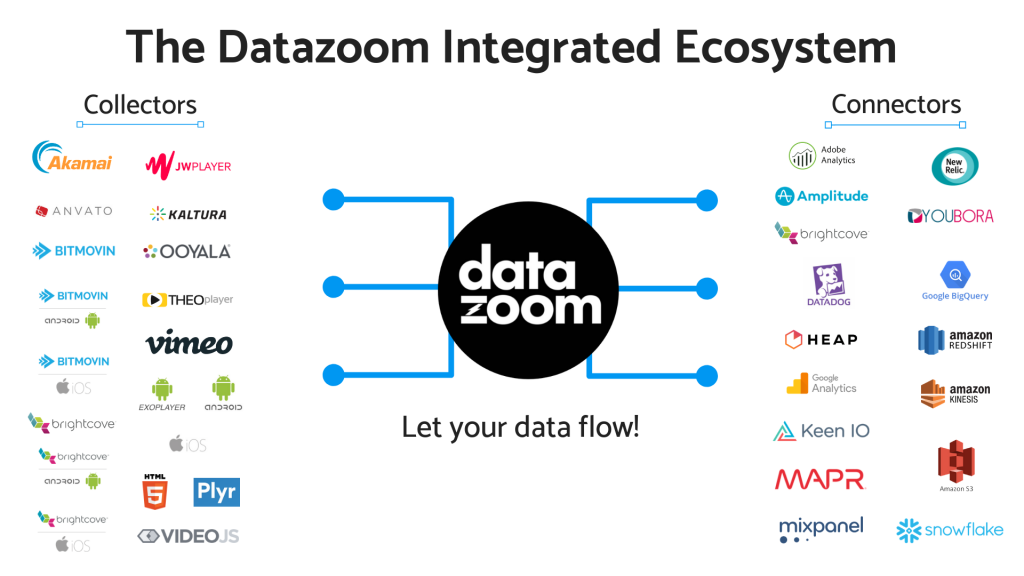 Datazoom exists at the intersection of a Video Data Control (with raw data capture and ETL capabilities) and Real-time Automation. Our platform captures event, metadata, and heartbeat (a.k.a. FluxData) data generated during playback experiences. Data Pipes is the data capture and routing component of Datazoom, acting as an intelligent intermediary between data generating “Collectors” (like video players) and pre-integrated, data-powered, “Connectors” (like general analytics, QoE platforms, ad servers, and CDNs).