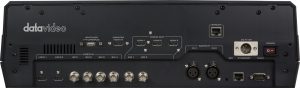 Two assignable HD-SDI and two HDMI outputs for connecting an HD recorder, monitor and a streaming encoder, plus two Balanced XLR audio inputs for connecting an external audio mixers. Other features include chromakey, lumakey, DSK, PIP, still stores, audio delay, tally and RJ-45/RS-232 remote control interface."