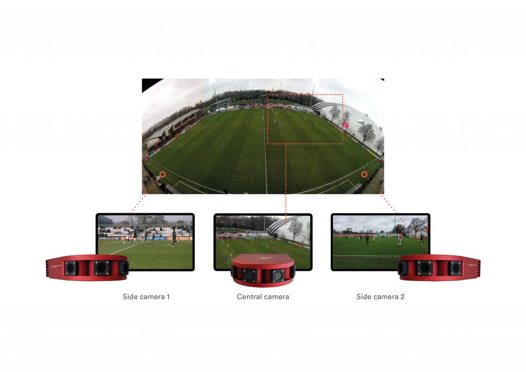 The IQ Sports Producer makes live and on-demand web broadcasting available without the hassle of hiring an entire camera crew. The system provides an automated video broadcast production with up to 3 180-degree cameras, which makes it possible to upgrade from a single camera to a multi camera production. The superb de-warping and stitching technology provides a natural-looking corrected image with straight line-markings.