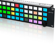 KSC Control Panels are available in different designs: 18 keys, 1 RU/19”, 54 or 72 keys, 2 RU/19”. Flat surface-mount modules with 18, 27, 36, or 45 keys can be mounted directly in front of vision mixers, for example.