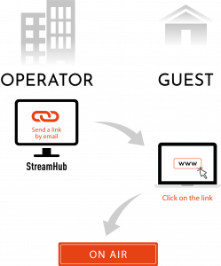 AVIWEST LiveGuest empowers professional broadcasters to create engaging, innovative content for audiences by inviting remote guests to join a live video call directly integrated with their production system. Your guests click on the link they have received by email and directly access the live. They will automatically connect to a StreamHub in your studio, no technical know-how or dedicated equipment is needed. The video streams received in the studio can be decoded and sent over SDI and NDI.