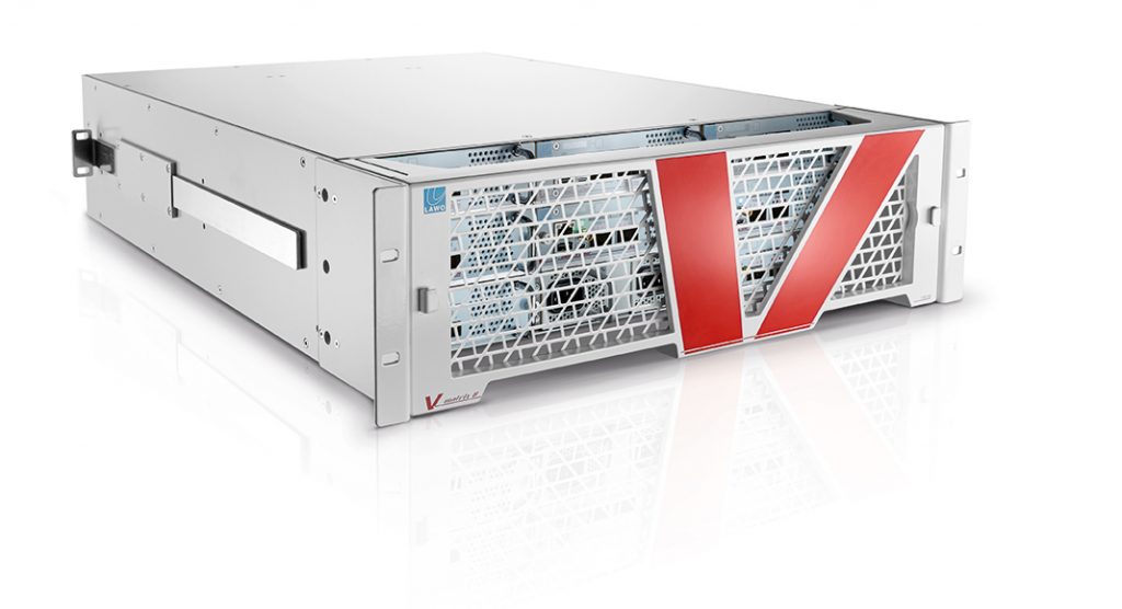 Lawo’s Power Coreᴿᴾ is a full-featured remote production solution for mc² audio consoles, providing integrated modular I/O, DSP and IP streaming capabilities, all in a compact 1RU device. It accomodates 64 channels of MADI audio via its front-panel port, and I/O count can easily be expanded using the eight rear-panel slots which can be loaded with Mic, Line, AES3 and GPIO cards, in any combination, for a total I/O capacity of up to 128 channels.