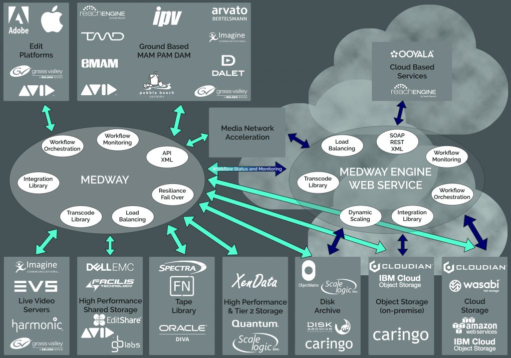 Medway is a powerful and scalable workflow software system, providing a complete digital workflow to ensure edit platforms, MAMs, video servers and archive systems work seamlessly together. Used globally by broadcast, production, post-production, newsrooms and playout facilities, Medway integrates multiple incompatible systems, transcoding and rewrapping media and metadata and supporting complex multi-resolution workflows.