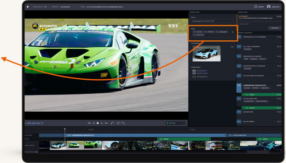 Quicker content creation: Thanks to the integration of Artificial Intelligence engines within VSNExplorer, it is now possible to automatically detect and retrieve specific video segments that comply with a set of given parameters and metadata, drag and drop these segments directly over VSNExplorer's web video editor, Wedit, and consolidate a final and already edited piece ready for broadcast, all without changing between windows.