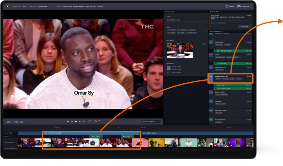 Content moderation capabilities: Content moderation is sometimes mandatory depending on the legislation applied in the region where some specific content is being broadcasted. Sentiment recognition systems, image and objects analysis, and natural language analysis enable the automatic detection of sensitive or adult content, both within image and audio layers, so that they may be adapted or eliminated directly using a video editor like VSNExplorer's Wedit.