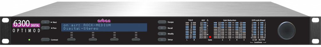 The OPTIMOD 6300 is a high-quality, multipurpose stereo audio processor for digital radio (DAB+, HD Radio), digital television, netcasts, STL protection, satellite uplink protection, and digital mastering.