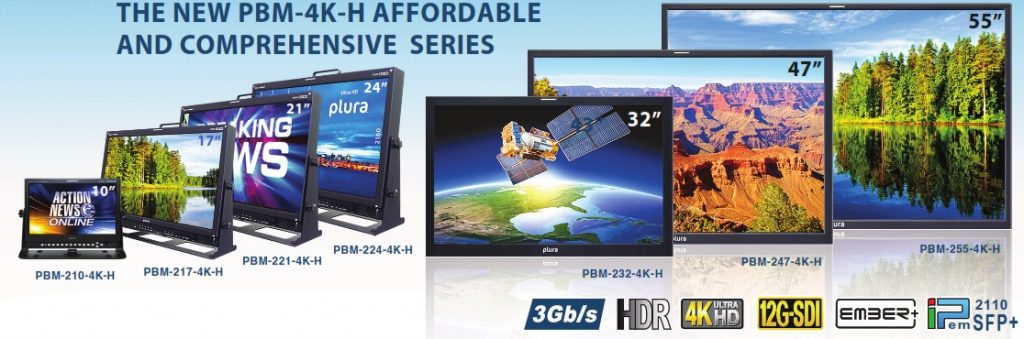 PBM-4K series offers HDR Display capabilities supporting PQ (ST-2084) & HGL standards. The PBM-4K series also adopts the exceptionally slim form factor that Plura customers enjoy, ensuring that even the largest 4K monitors in the portfolio demand a modest slice of real estate.