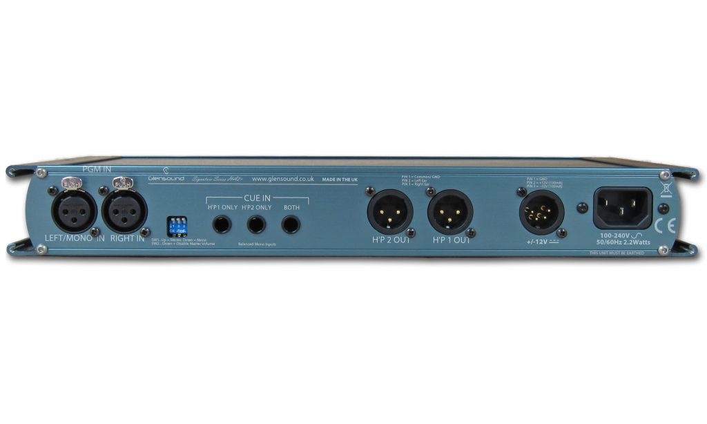 There are also secondary, mono cue inputs. Connections are via one of 3 x 6.35mm jack sockets on the rear panel. This allows a single cue input to be connected to both headphone outputs, or each headphone amplifier can receive an individual cue input.