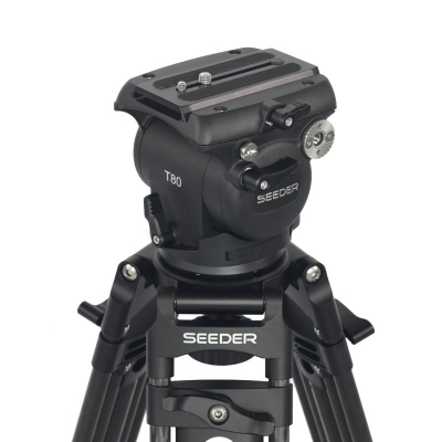 Seeder T80A2 Two-Stage Aluminum Video Tripod Systems with metal feet mid-level spreader/ground spreader and Padded Bag
