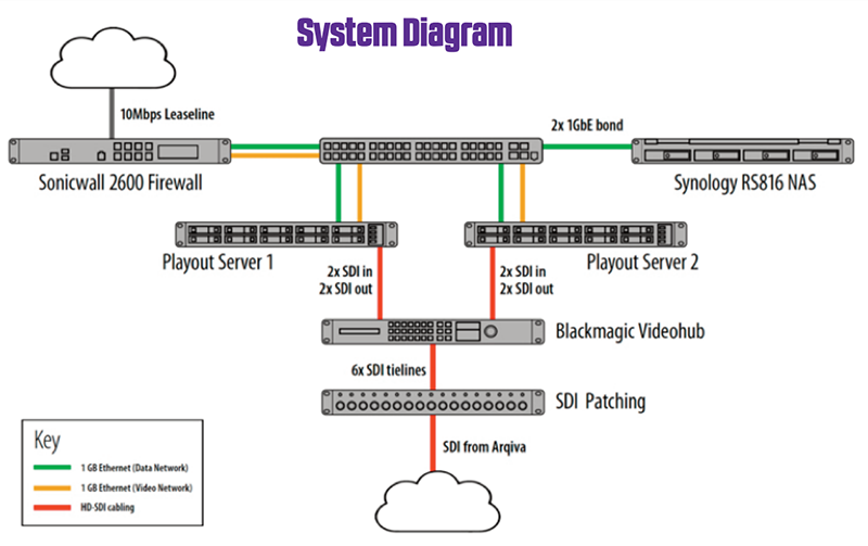 The company reviewed the market, looking at both traditional playout infrastructures and software-defined, IP-connected systems. Given that the facility would be built as part of its tenancy of the Arqiva control centre in Chalfont St Peter, west of London, a compact solution would have distinct advantages.