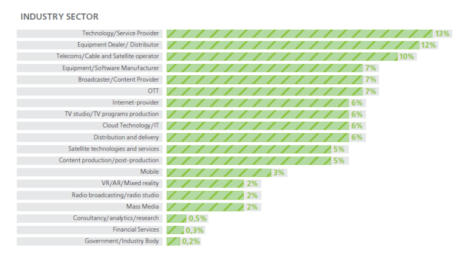 Among the exhibitors today you will see not only content producers and, media holdings and TV channels, multiservice operators and telecom companies, but also digital platforms, content aggregators, film companies and production studios, equipment manufacturers, system integrators, IT companies, consulting and analytical agencies and industry associations.