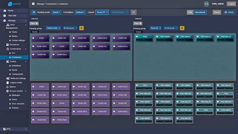 There is also a new integration with VideoIPath, Nevion’s orchestration and SDN (software defined network) control software. This integration enables users to control SDNs, in addition to the traditional IGMP-based networks. Pebble Control can discover devices in the VideoIPath system and issue connection requests based on the user input. Furthermore, VideoIPath customers can now benefit from Pebble Control’s advanced features, such as its container logic concept.