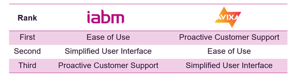 When reviewing the responses received by IABM and AVIXA independently, a subtle difference can still be inferred. Broadcast end-users pride themselves on their ability to manage complexity, however that level of ability is not guaranteed in parallel markets, and therefore, ease of use must be the primary consideration for vendors in designing and marketing their products. Meanwhile for Pro AV users that do not necessarily have dedicated video training and Broadcast AV as a competency, among their other competing responsibilities, access to proactive customer support is vital for when troubleshooting exceeds their own capabilities.