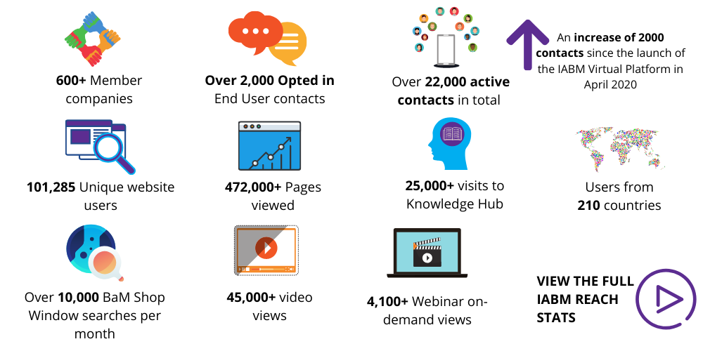 - Promote your products and services on the IABM Virtual Platform available 365 days of the year and providing an international central repository for you customers to find all of the products and services that they require in one place