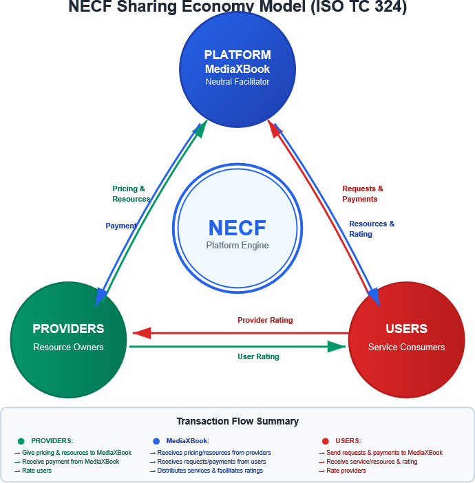 The technology outlines a framework for optimizing global resource and personnel distribution within the sharing economy, a concept that applies directly to the future of media production. NECF’s architecture enables efficient use of personnel, design, and communications resources across all tiers of production, from professional to consumer.