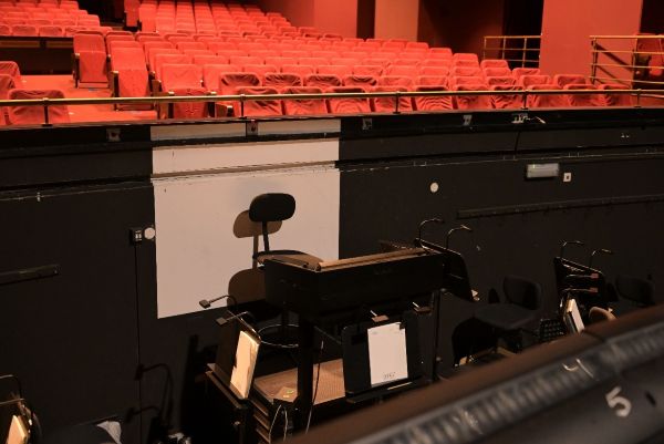 The orchestra pit deep below the stage level, making it difficult for singers and backstage staff to see the conductor directly.